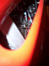 And here are some bad pictures of the radar detector mounted inside the front right fairing. It's secured with epoxy (to the metal mount) and industrial (T-hook) Velcro. Fairly secure.